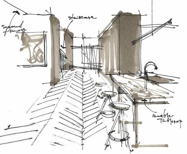 Qui è dove le prime suggestioni prendono forma tramite la suddivisione degli spazi, la creazione della palette di colori e materiali, e lo sviluppo tridimensionale.
