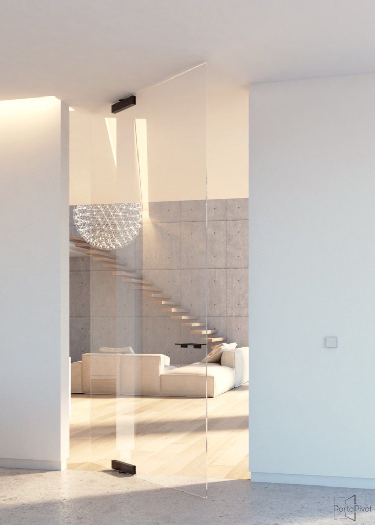 - 4. Porte pivotanti: sono soluzioni molto particolari dove l’anta è attraversata da un perno verticale, solitamente decentrato, che permette alla porta di ruotare su se stessa, aprendo e chiudendo il vano di passaggio. Si tratta di una soluzione di design molto particolare, adatta ad ambienti che non necessitano di una separazione molto netta.