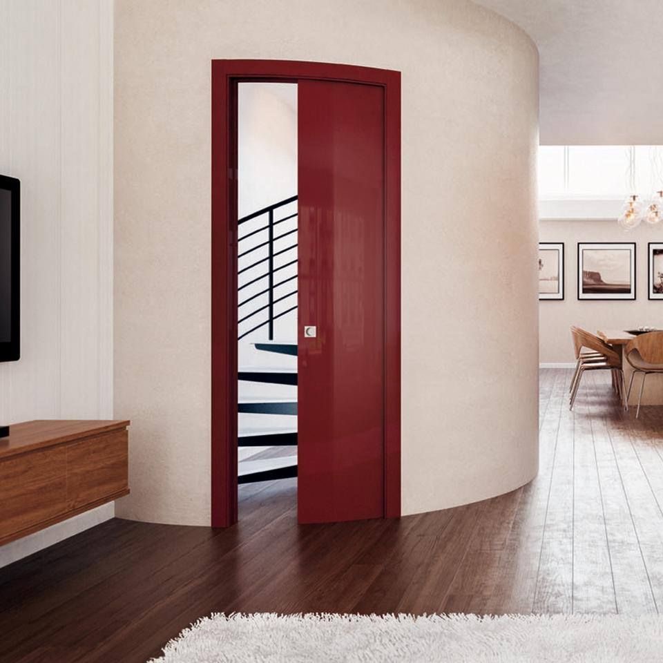 - 5. Porte scorrevoli a scomparsa: spesso chiamate a “scrigno” dal nome di uno dei più noti produttori, scorrono all’interno di un cassone metallico che deve essere inserito all’interno della parete. Proprio per questo motivo hanno costi maggiori e devono essere previste fin dalle prime fasi dei lavori di costruzione o ristrutturazione. Tra l’altro la parte di muro in cui il cassone è inserito non può essere forata e non può ospitare impianti, a meno che non si realizzi una controparete. Il vantaggio ovviamente è quello di azzerare l’ingombro di apertura della porta. Inoltre quando è aperta l’anta scompare del tutto, dando vita ad un effetto “open space”. Interessante la possibilità di inserirle in muri curvi.