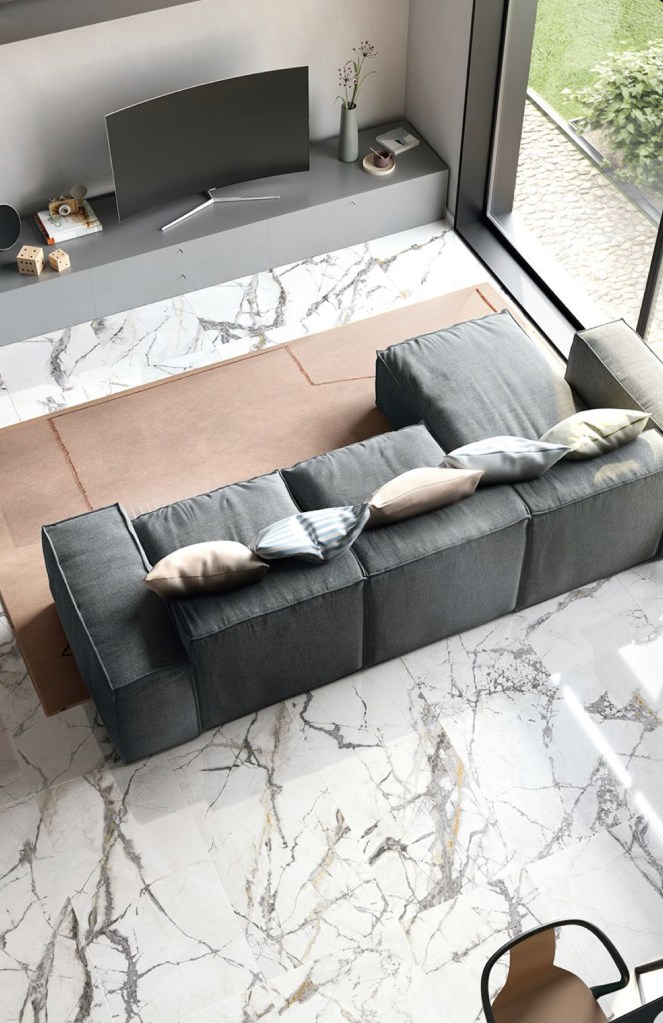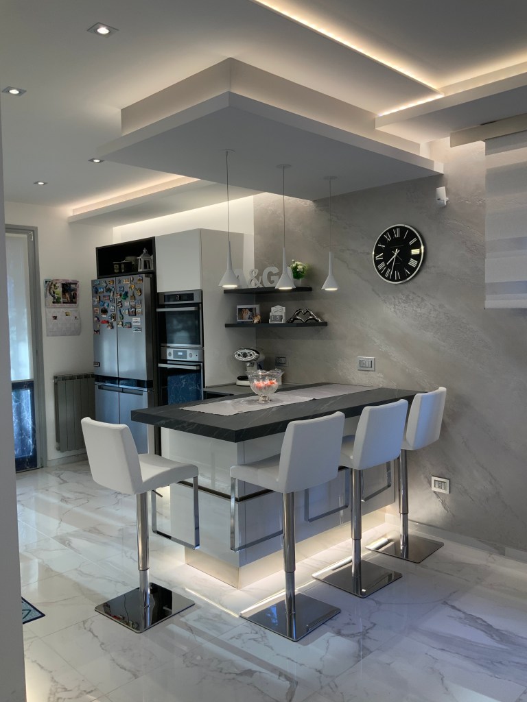 La prima è quella del rafforzamento dell’atmosfera: sia le finiture della casa che gli arredi ed i complementi seguono in maniera perfetta l’atmosfera che hai delineato. Ti faccio un esempio sulla prima sensazione descritta, quella della casa elegante. Pavimenti effetto marmo bianco lucido, con controsoffitti che ospitano illuminazione a led e porte laccate bianche con inserti cromati, vengono ulteriormente supportati da divani in pelle bianca, tavolo in cristallo con gambe cromate e una cucina laccata bianco lucido con top in quarzo venato o con cristalli.