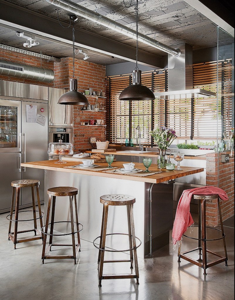 Nella seconda foto invece a delle finiture grezze ma neutre, sono abbinati molti elementi di colori contrastanti, con un effetto vivace e dinamico