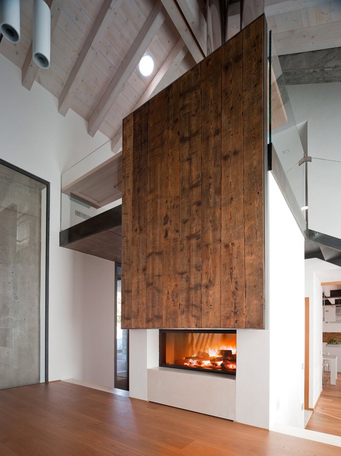 La progettazione libera del rivestimento del camino, ovvero della sua parte esterna ed estetica, è la soluzione ideale quando si vuole personalizzare al massimo il caminetto con il proprio arredo. Ad esempio può essere interessante inserire il focolare all’interno di un elemento contenitore anziché separarlo dal resto dell’arredo: in questo caso un camino bifacciale è la scelta ideale poichè si integra perfettamente all’interno di un elemento architettonico che svolge una duplice funzione, estetica e funzionale. Un’altra proposta molto versatile, che funziona bene in quasi tutti gli ambienti, è un rivestimento in cartongesso ignifugo: il monoblocco camino viene installato senza aggiungere ulteriori elementi o decori, rigore e pulizia che lasciano al focolare il ruolo di protagonista della parete. O ancora, quando la canna fumaria ha un andamento regolare e lineare, la soluzione di valorizzarla, lasciandola completamente nuda alla vista, può essere una scelta validissima e non soltanto dal punto di vista estetico: salendo verso l’alto, infatti, i fumi rilasciano calore, che non essendo “bloccato” dal rivestimento si diffonde in modo naturale e veloce nell’ambiente circostante.