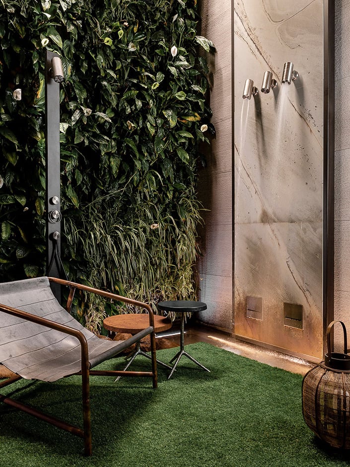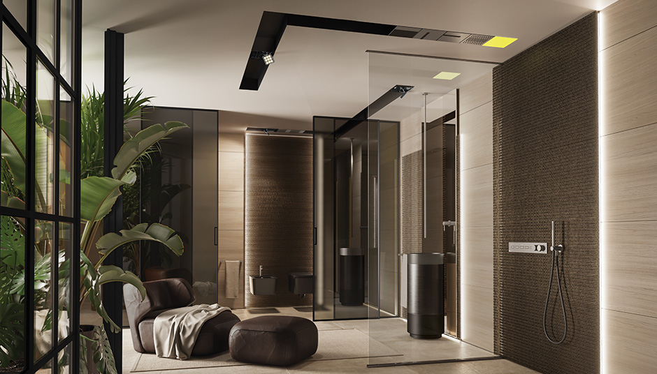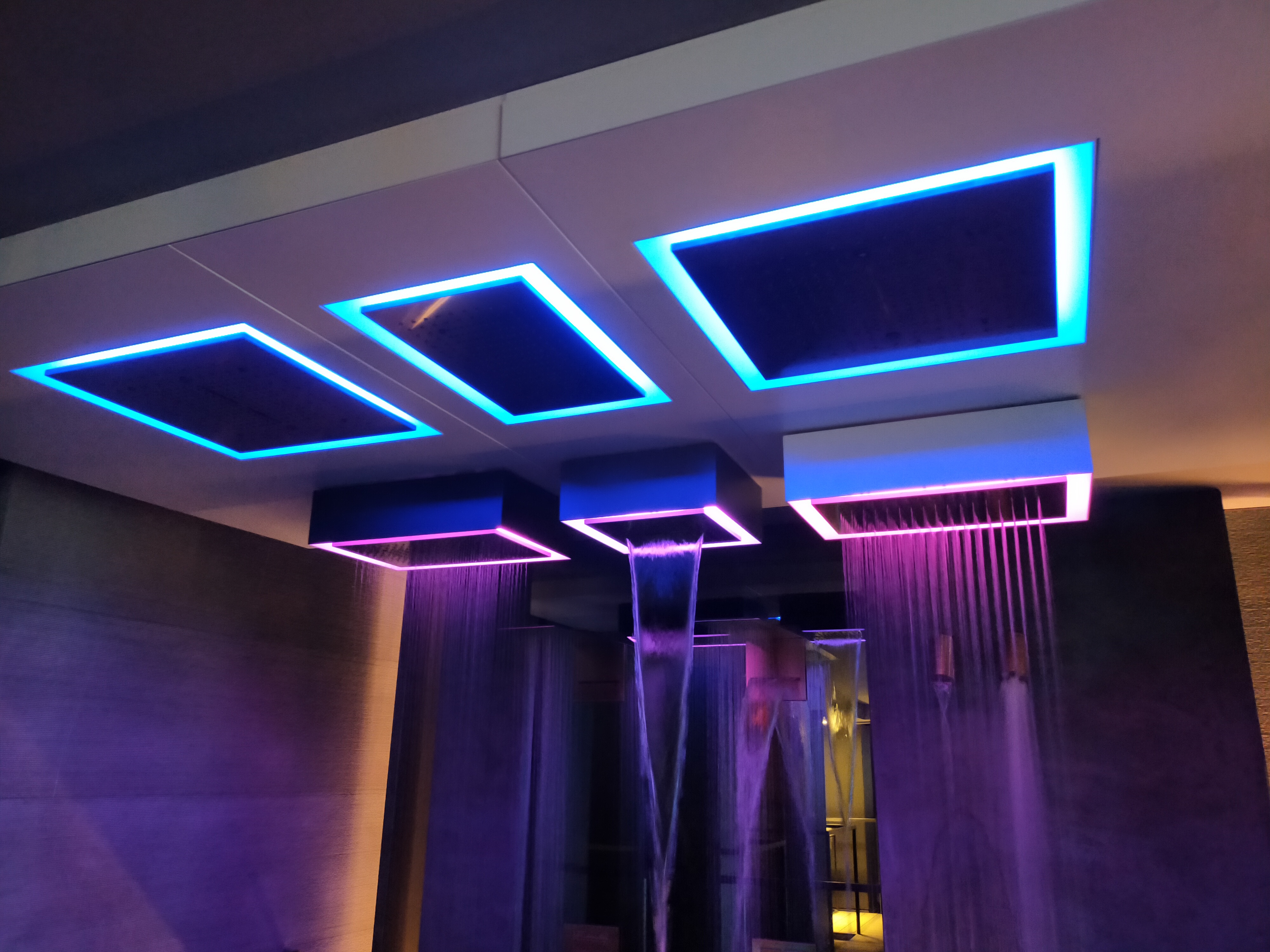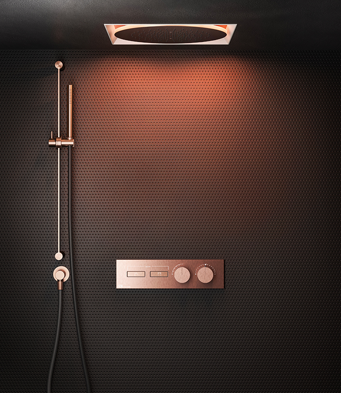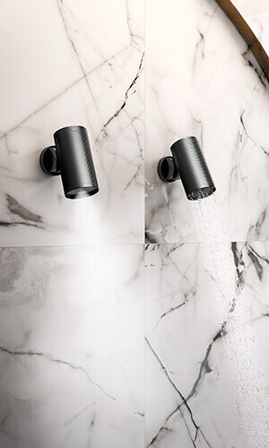 Attraverso un sistema modulabile completamente a scomparsa nel soffitto, viene trasformata la natura dell’acqua a seconda delle varie necessità. Come in una fonte l’acqua scaturisce da un unico punto e assume la forma delle diverse posizioni selezionate: cascata, pioggia, nebulizzata. Alle diverse tipologie di getto puoi abbinare anche la cromoterapia con differenti giochi di luce e la musica, per un’esperienza di benessere totalizzante.
