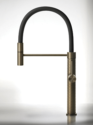 - Officine Gessi. Non solo rubinetti e miscelatori per l’ambiente bagno, ma anche prodotti per la cucina. Attraverso questa collezione di chiara ispirazione meccanica, le forme evocative della tipica utensileria industriale, come chiavi e bulloni, diventano parte integrante e fortemente distintiva del prodotto. La cucina diventa quindi un laboratorio gastronomico dell’alto contenuto estetico.