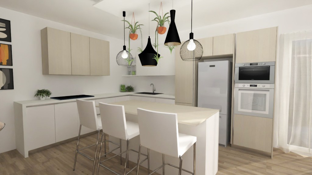 Se vuoi una cucina sempre in ordine privilegia il posizionamento di piano cottura e lavello lungo le pareti, e sfrutta l’isola come piano di lavoro e zona snack: in questo modo sarà più semplice mantenerla sgombra.