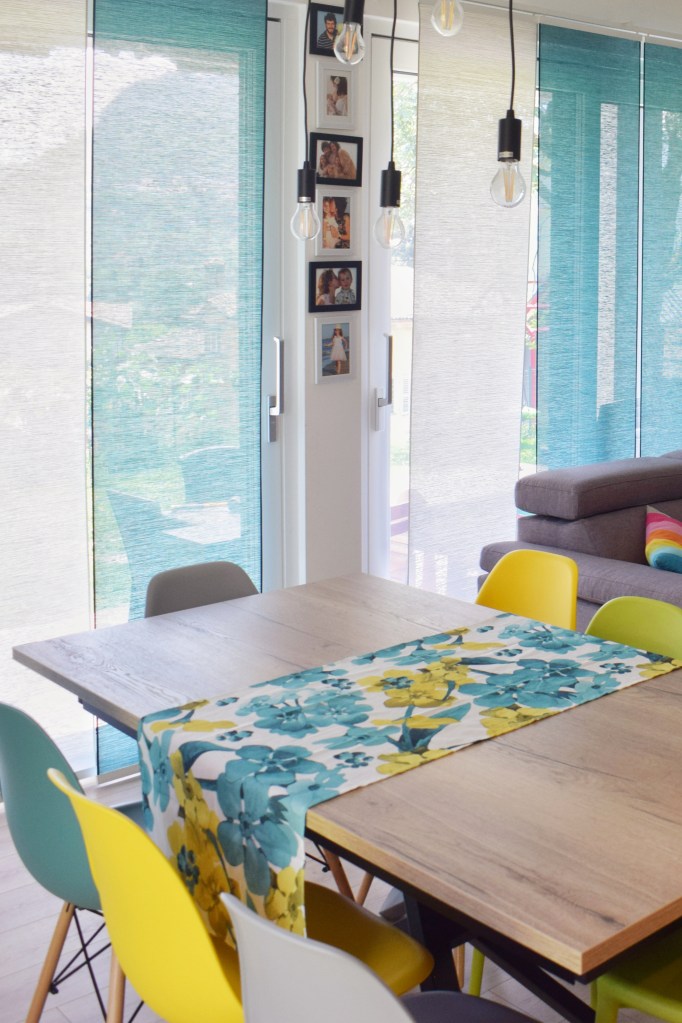 Per portare dinamismo e allegria sono stati poi aggiunti il tiffany, il giallo e qualche tocco di verde.